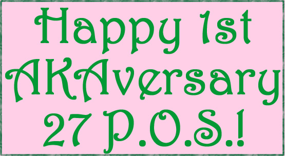 I was initiated into Alpha Kappa Alpha in the Fall 2004. I was one of 27 lovely ladies (27 P.O.S.) to reach our pink and green dream. I am learning a great deal every day and I am very happy that I can help make Alpha Kappa Alpha Supreme in Service to ALL Mankind!